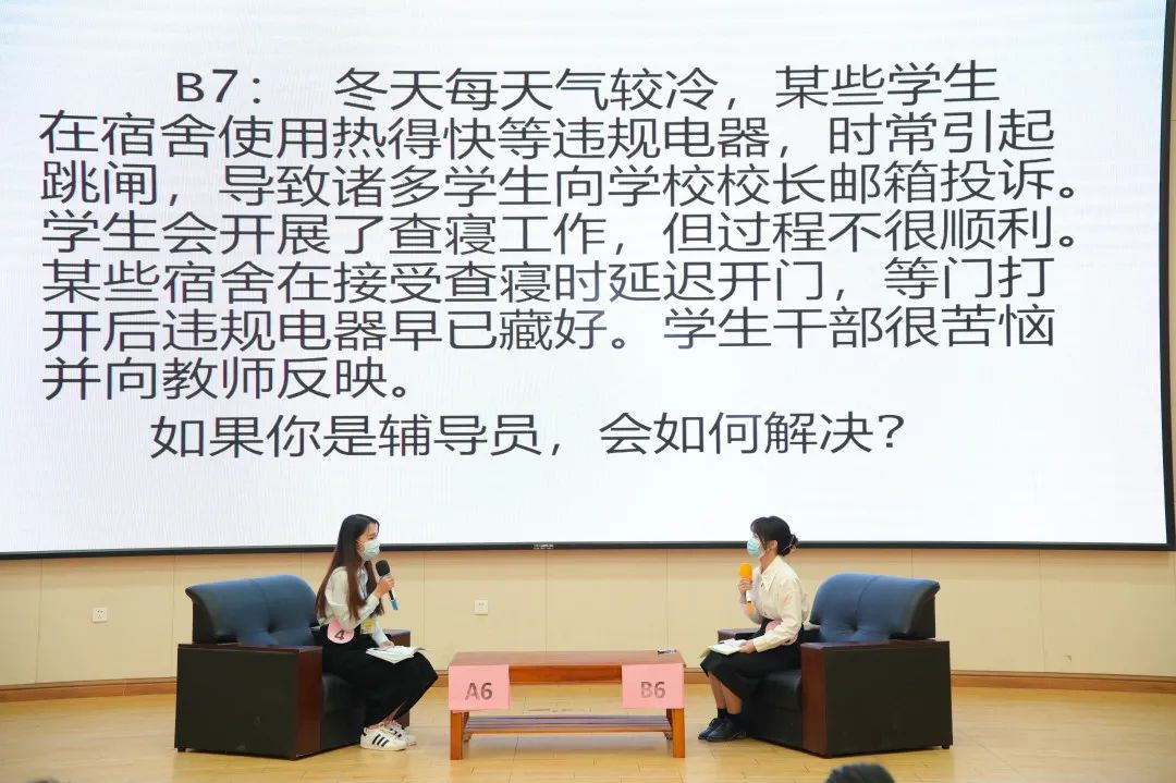 为深入学习贯彻习近平新时代中国特色社会主义思想和党的十九大、十九届历次全会精神,全面贯彻落实全国高校思想政治工作会和学校思想政治理论课教师座谈会精神,2022年4月8日至9日,beat365在图文信息大楼三楼学术报告厅举行第八届辅导员素质能力大赛,学校党委副书记黄秋霞出席比赛现场,党委委员、学生工作处副处长李丽诗及各二级学院负责人担任比赛评委,全体在岗辅导员参加了比赛。