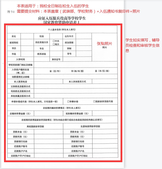 1.《应征入伍服兵役高等学校学生国家教育资助申请表Ⅰ》中的“应缴学费总金额”,只填写学费总金额,不包括任何住宿费和杂费;学费减免金额填0。