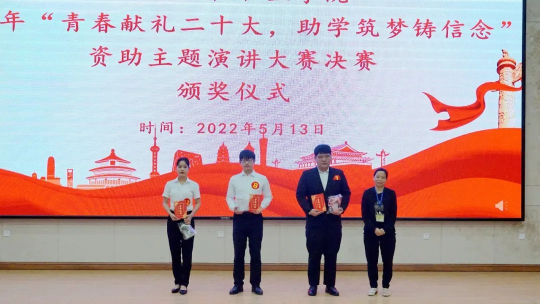 为积极营造喜迎二十大的浓厚氛围,培育受助学生爱党爱国爱校的情感和感恩意识,进一步加大学生资助政策宣传力度,5月13日晚,学校学生工作处在图文信息大楼一楼学术报告厅举行2022年“青春献礼二十大,助学筑梦铸信念”资助主题演讲大赛。