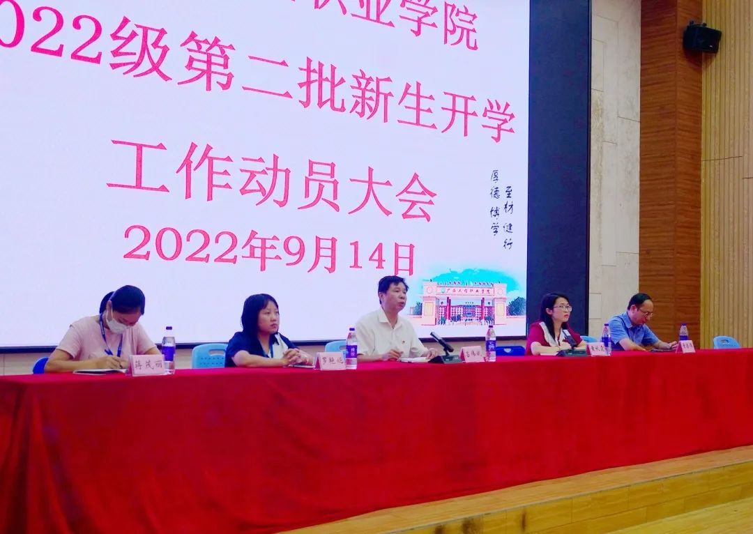 会上,黄秋霞副书记作第二批新生开学工作动员讲话,她充分肯定了学校2022级第一批新生接待工作在学校党政领导班子的指导和全体师生的共同努力下圆满完成,确保了校园安全稳定。第二批新生开学报到在即,希望全体教职工继续保持良好的工作作风,继续从严从紧从细做好新生接待工作,一是要严格按照学生工作处制定的第二批新生入学方案,认真落实主体责任,明确岗位职责,接待工作落实到位;二是要提前谋划新生接待准备工作,做到各项接待工作科学有序,细致到位;三是组员之间要加强沟通协调,确保接待过程衔接到位;四是要加强疫情防控措施,严格执行既定方案,抓好关键点管控,从严从实执行亮码测温、口罩防护、48小时核酸检测报告等各项防疫措施,确保疫情防控“零死角”,确保校园安全稳定;五是进一步增强工作责任心,不推诿工作,务必确保第二批新生接待工作圆满完成。