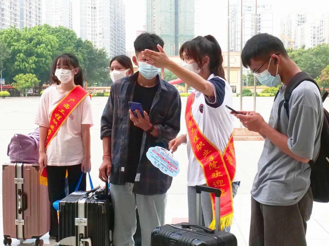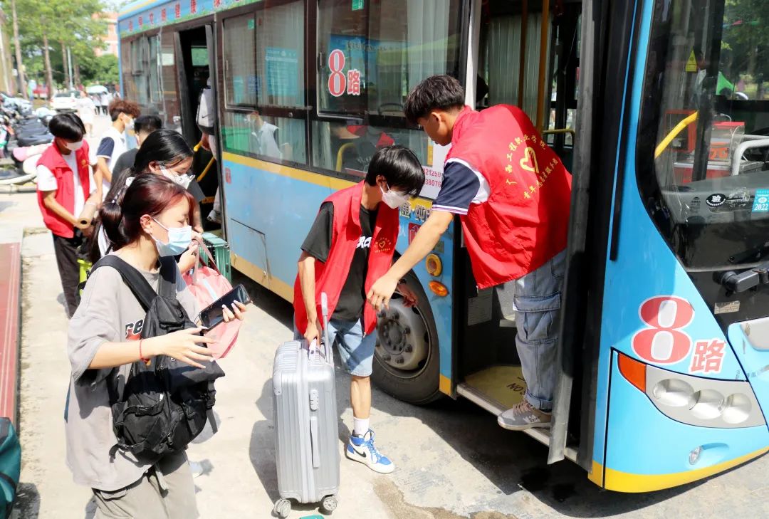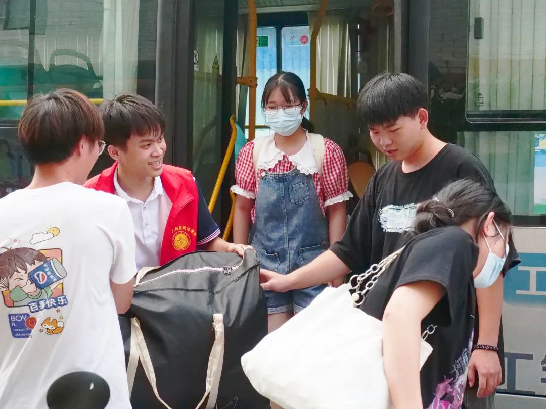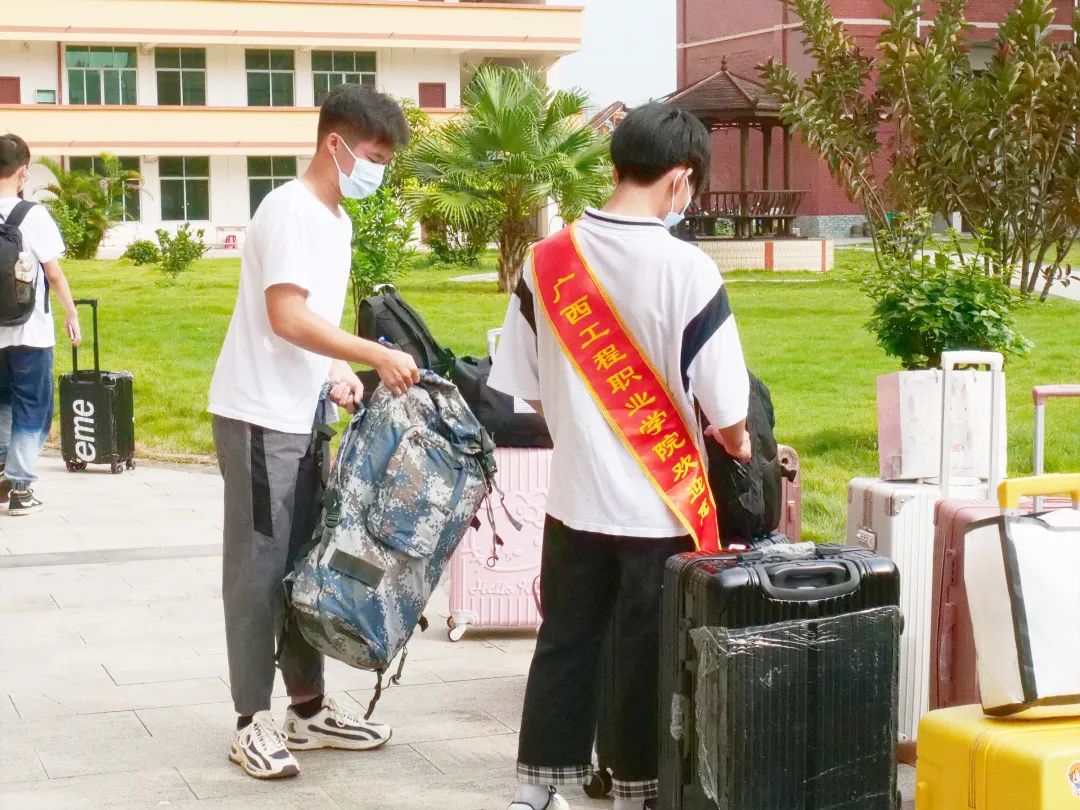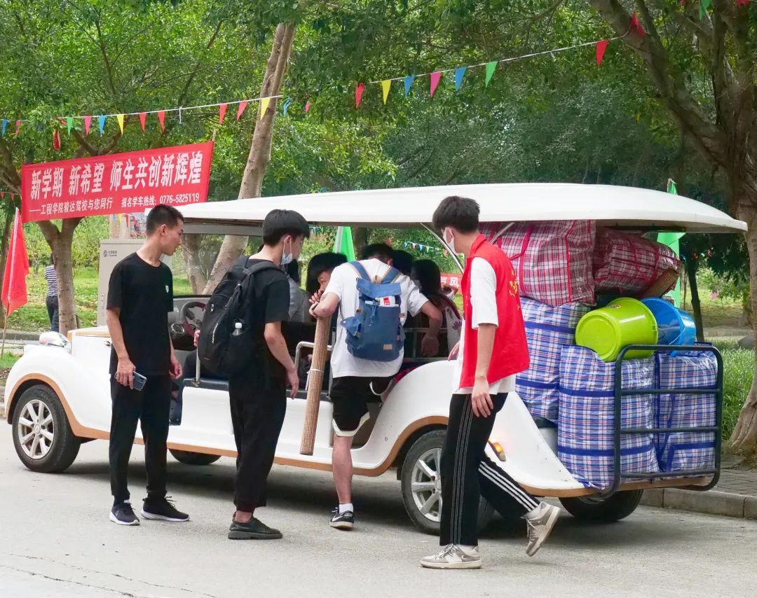 为了方便萌新们寄存行李,学校设置了行李寄存处。报到完毕,志愿者们还协助萌新们把行李安全运送到学生公寓,减轻他们负重奔波的负担。