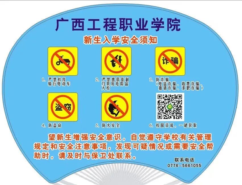 暖心!加持新生入学工作,学校保卫处特别制作了“新生入学安全须知”小扇子,发放给新生及其家长,提醒新生增强安全意识和自我防范意识,自觉遵守学校相关管理规定,注意人身安全。