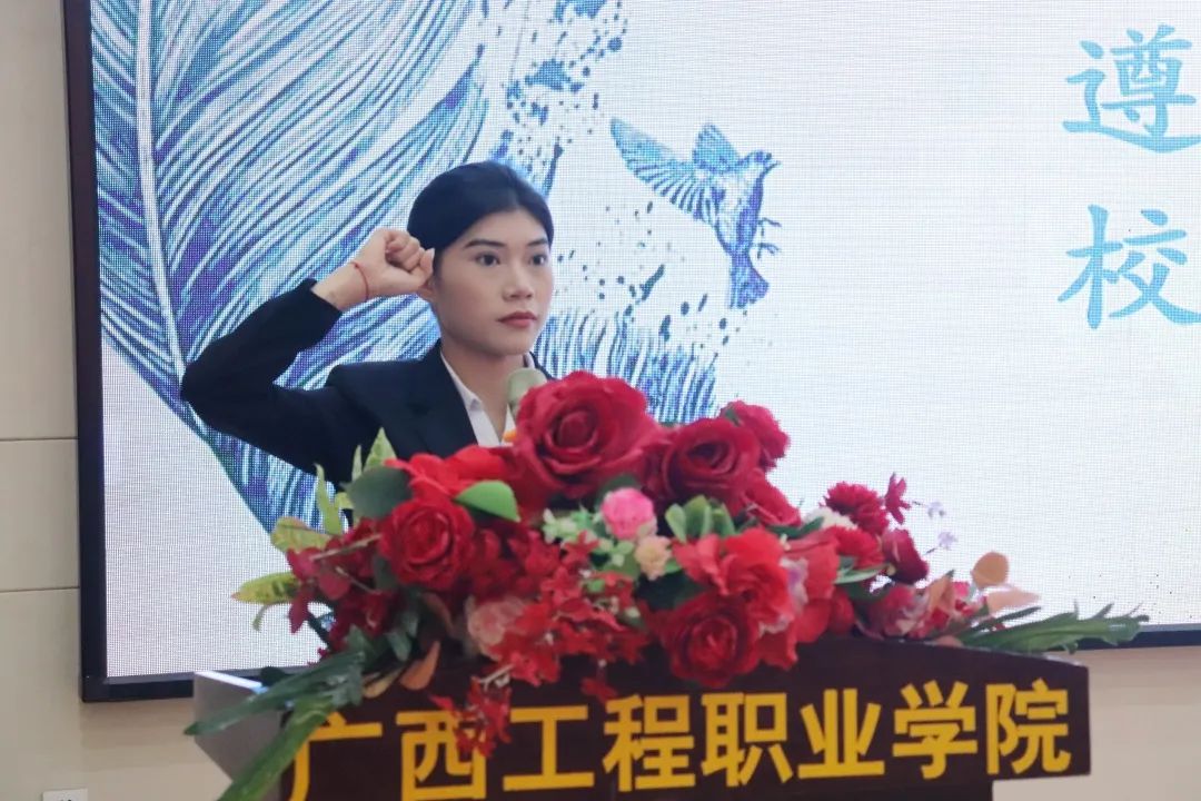 学生工作处副处长李丽诗致辞,她指出,作为学生干部要明白自身的身份与职责,既要做好本身的工作任务,也要兼顾自己的学业;既要以身作则,也要监督与提醒同学们不要违规违纪。