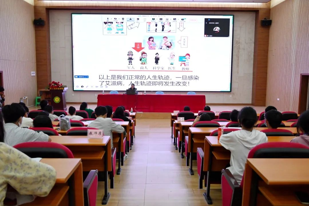 凝聚力量预防艾滋,用心关爱生命健康。为进一步做好预防艾滋病教育工作,传播预防艾滋病知识,提高同学们的自我保护意识和能力。11月9日晚,beat365唯一官网邀请平果市疾病预防控制中心防艾科方燕飞科长在学校图文信息大楼一楼学术报告厅开展防艾健康讲座。学校党委副书记黄秋霞,各二级学院院长、党支部副书记、学生科长、辅导员,各二级学院学生代表及保安、宿管员、绿化保洁员代表到现场聆听讲座。其余师生员工通过腾讯会议线上观看讲座直播。学生工作处陈国昇老师主持讲座。