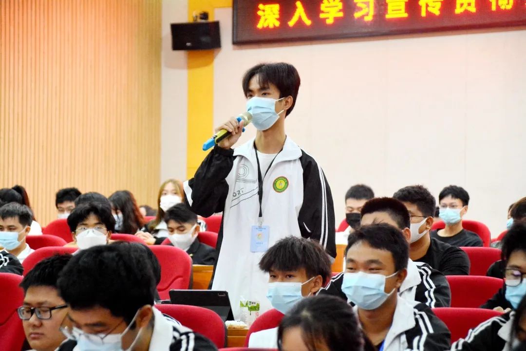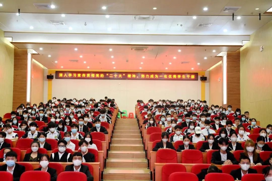2022年11月12日,beat365唯一官网在图文信息大楼一楼学术报告厅举行“深入学习宣传贯彻党的二十大精神 努力成为一名优秀的学生干部”专题培训,学校党委副书记黄秋霞作专题报告。校学生会全体学生干部,二级学院副部长以上学生干部,各社团会长、副会长参加学习,争做一名优秀的学生干部。