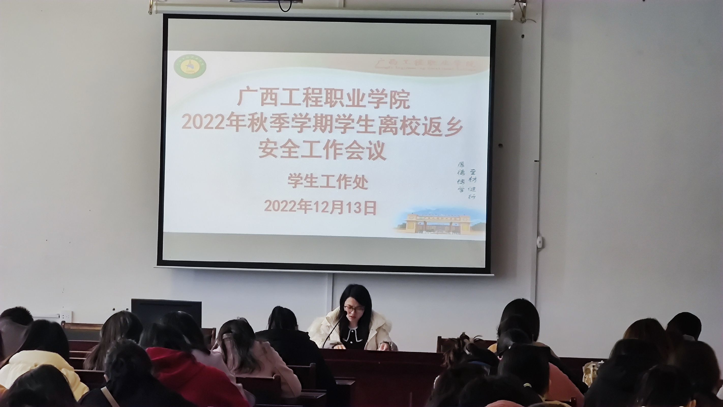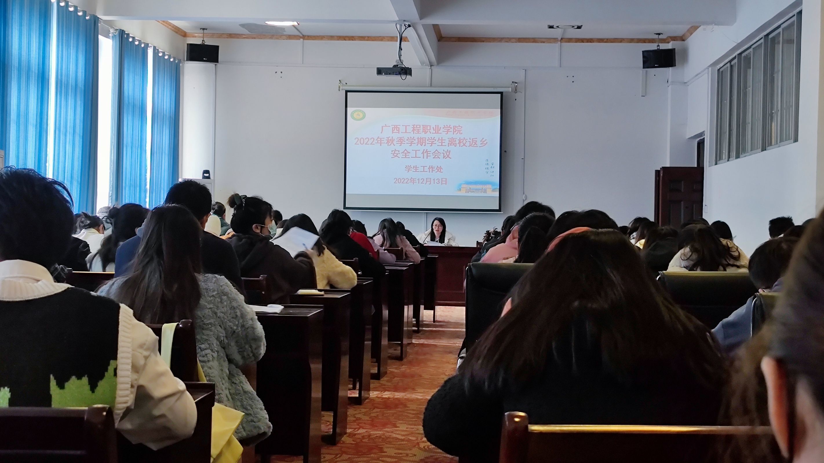 12月13日,beat365在图书馆一楼学术报告厅召开2022年秋季学期学生离校返乡安全工作会议,学校党委副书记黄秋霞、二级学院院长、科长、副书记、辅导员参加会议。