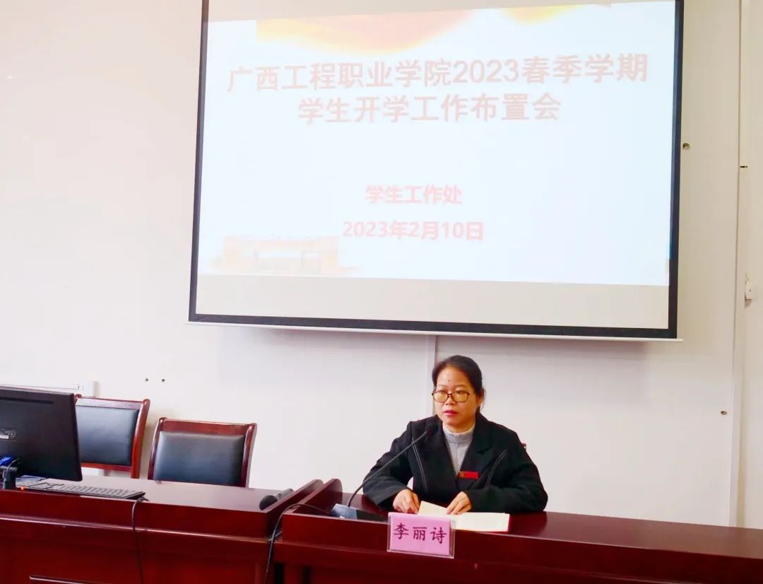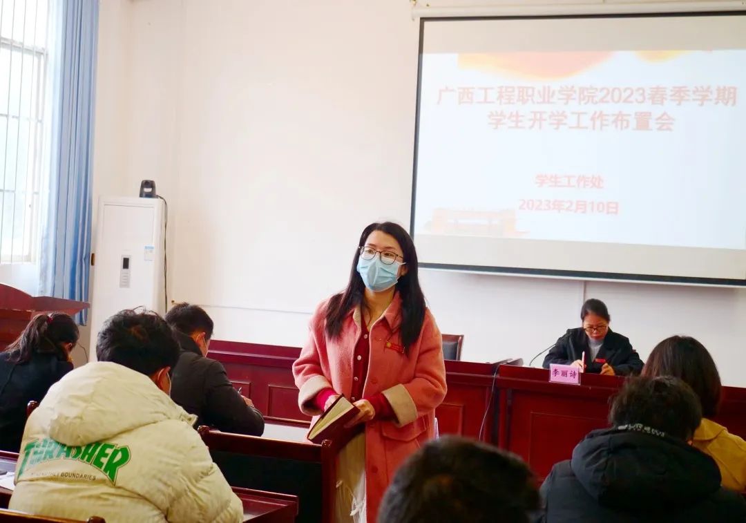 会上,李丽诗副处长对学校2023年春季学期开学具体工作进行了详细解读和说明,明确了工作目标和工作要求,强调各二级学院(部)要做好开学前、开学时、开学后的各项工作。全体辅导员要进一步提高思想认识,明确工作职责,全面提高学生工作服务管理水平,做好学生返校各环节衔接,及时发现问题并妥善处理,确保学生安全返校。