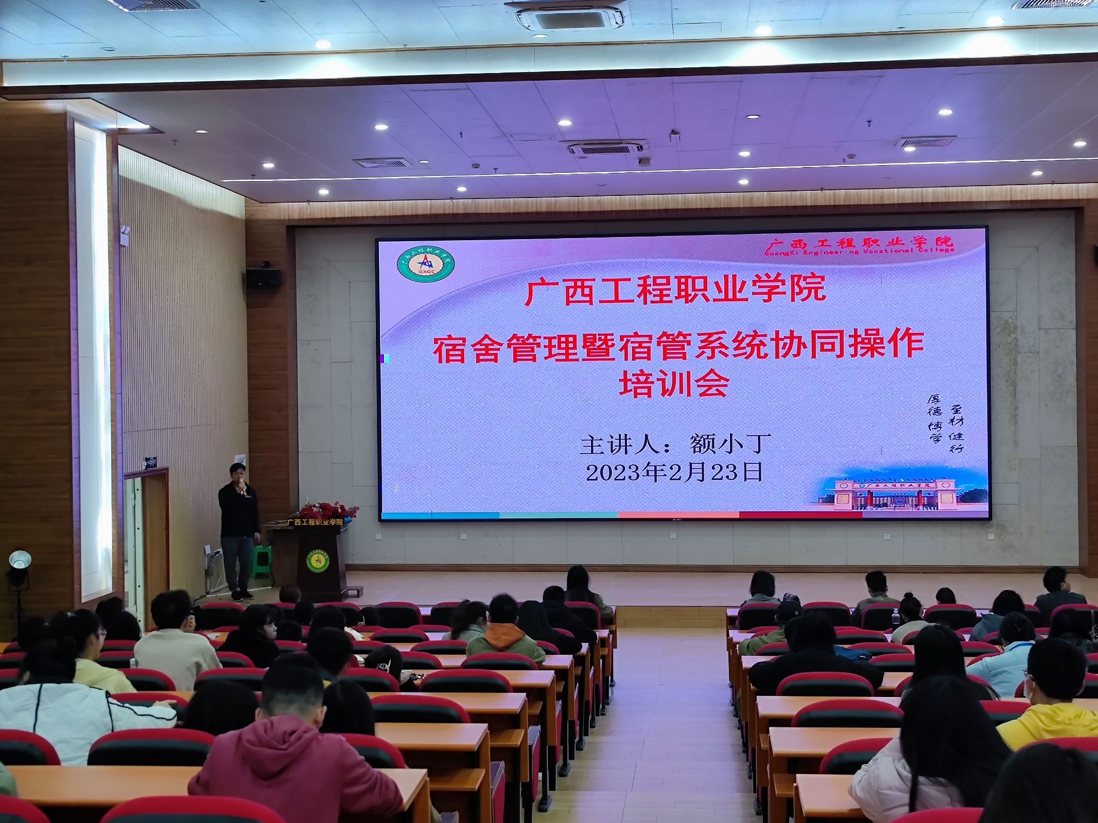 为进一步推进智慧校园建设,提升宿舍管理水平,推进宿舍服务信息化、系统化、科学化。按照学校数字化校园建设工作安排,2023年2月23日,beat365学生工作处在图文信息大楼一楼学术报告厅开展学生宿舍管理系统专题培训,二级学院院长、科长、副书记、辅导员参加了会议。会议由学生工作处宿管科额小丁老师主持。
