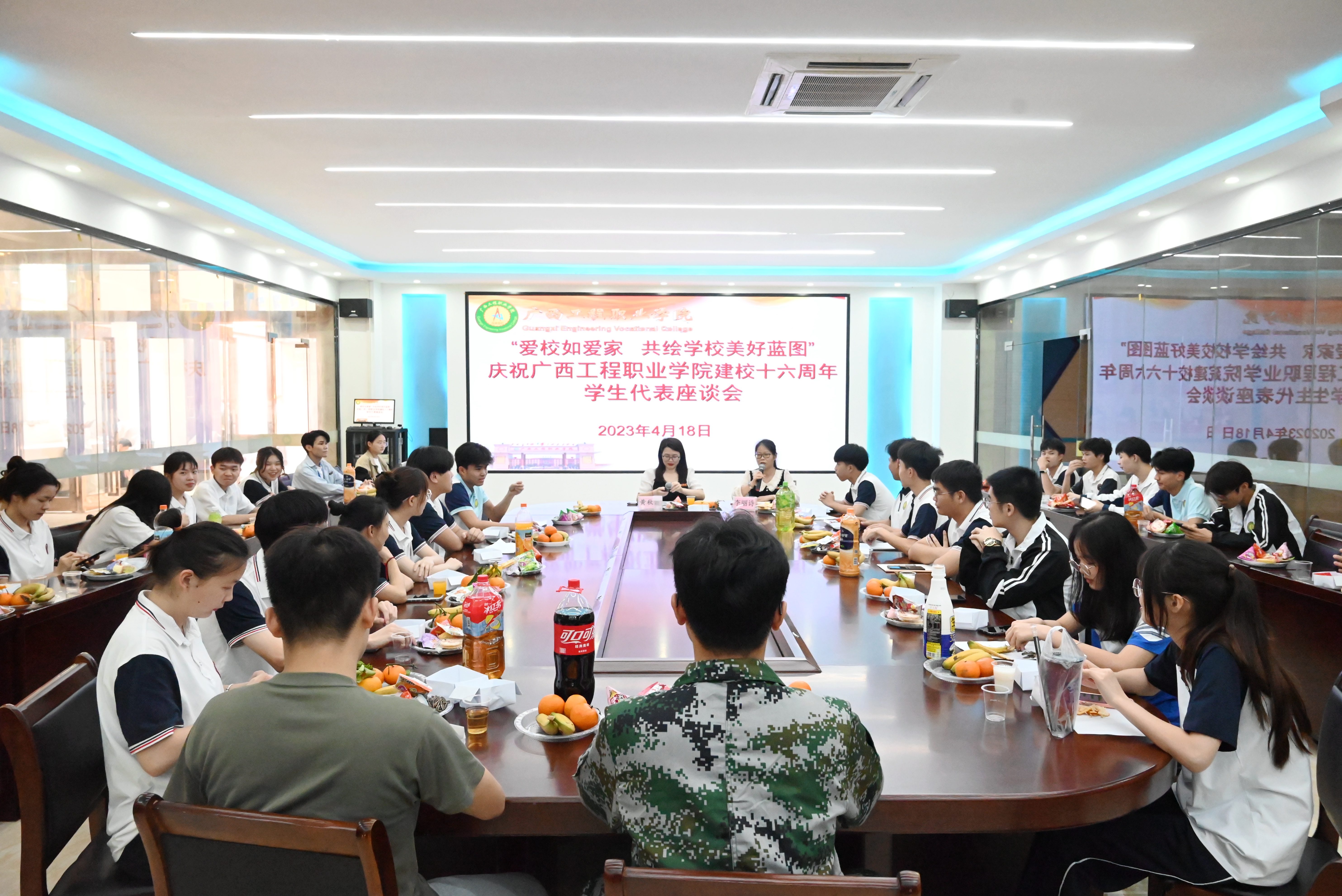 4月18日下午,beat365在图书馆一楼展厅召开庆祝beat365唯一官网建校十六周年学生代表座谈会。学校党委副书记黄秋霞出席座谈会,学校党委委员、学生工作处副处长李丽诗以及各二级学院学生代表参加座谈会。座谈会由李丽诗主持。