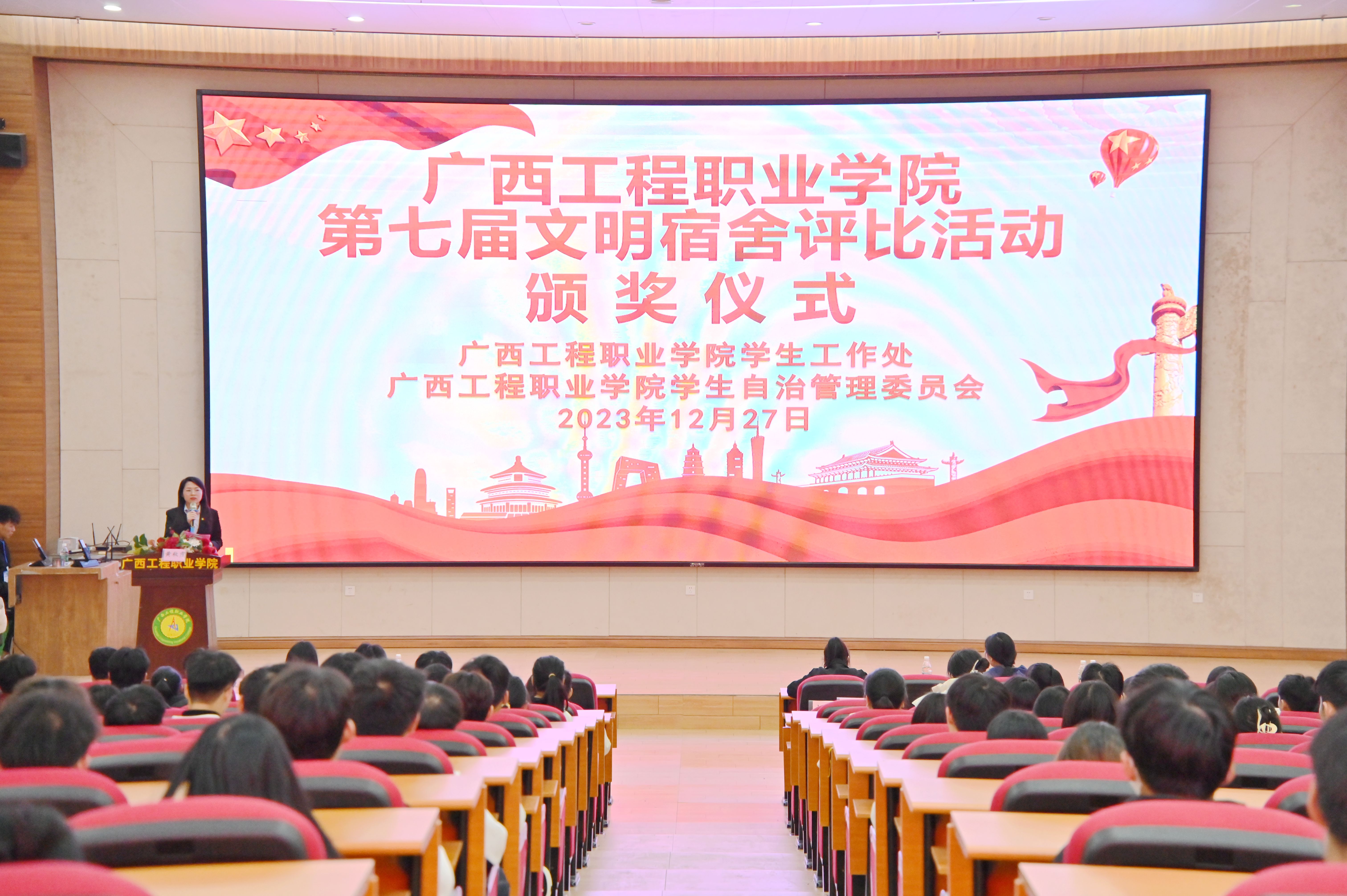为进一步加强校园文明建设,培养同学们良好的学习生活习惯,同时营造温馨舒适、健康和谐的寝室文化氛围,为广工院学子提供良好的住宿环境,学生工作处举行第七届文明宿舍评比活动颁奖仪式。 学校党委副书记黄秋霞出席颁奖仪式;各二级学院分团委书记、学工处全体成员、文明宿舍获奖代表参加颁奖仪式。通过每月综合评比共有30间宿舍获得“文明宿舍”荣誉称号。