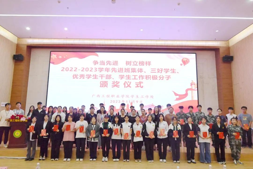 为表彰先进,树立榜样形象,凝聚榜样力量,发挥榜样引领作用,营造积极向上的校园氛围,2023年11月9日晚,学校在图文信息大楼一楼学术报告厅举行了2022-2023学年先进班集体、三好学生、优秀学生干部、学生工作积极分子表彰暨颁奖仪式。学生工作处全体人员、二级学院院长、党支部副书记、学生科长、全体辅导员及学生代表参加仪式。仪式由团委副书记陈国昇主持。
