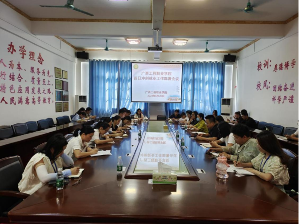 为深入学习贯彻党的二十大精神,落实党中央、 国务院、自治区教育厅关于高校毕业生就业工作决策部署,抓住高校毕业生就业工作关键期,加快工作进程,全力促进高校毕业生顺利就业,beat365于2023年5月25日在校图书馆会议室开展了百日冲刺就业工作部署会议,分管招生就业处校长助理梁善雅、就业办全体成员、二级学院院长(副院长)、学生科科长、分团委书记以及2023届毕业生辅导员参加会议,招生就业处副处长岑易精主持本次会议。