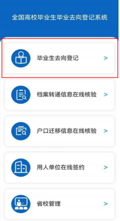 通过手机端搜索登记系统网址dj.ncss.cn,点击“毕业生去向登记”,使用学信网账号登录。