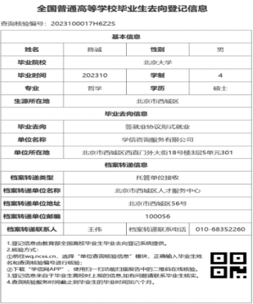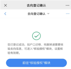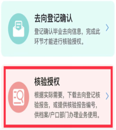 毕业生核验授权后,档案和户籍接受管理部门在办理相关手续时,可查询核验毕业生离校时相应的去向登记信息。