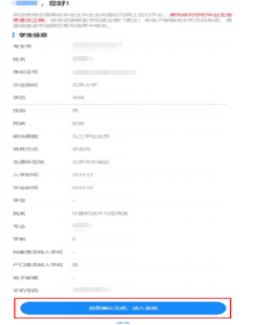 首次登录需要核对本人基本信息是否正确。若信息无误,点击“信息确认无误,进入系统”;若信息有误,联系学校就业管理科进行修改(手机号码、电子邮箱需要本人在学信网账号信息中修改)。
