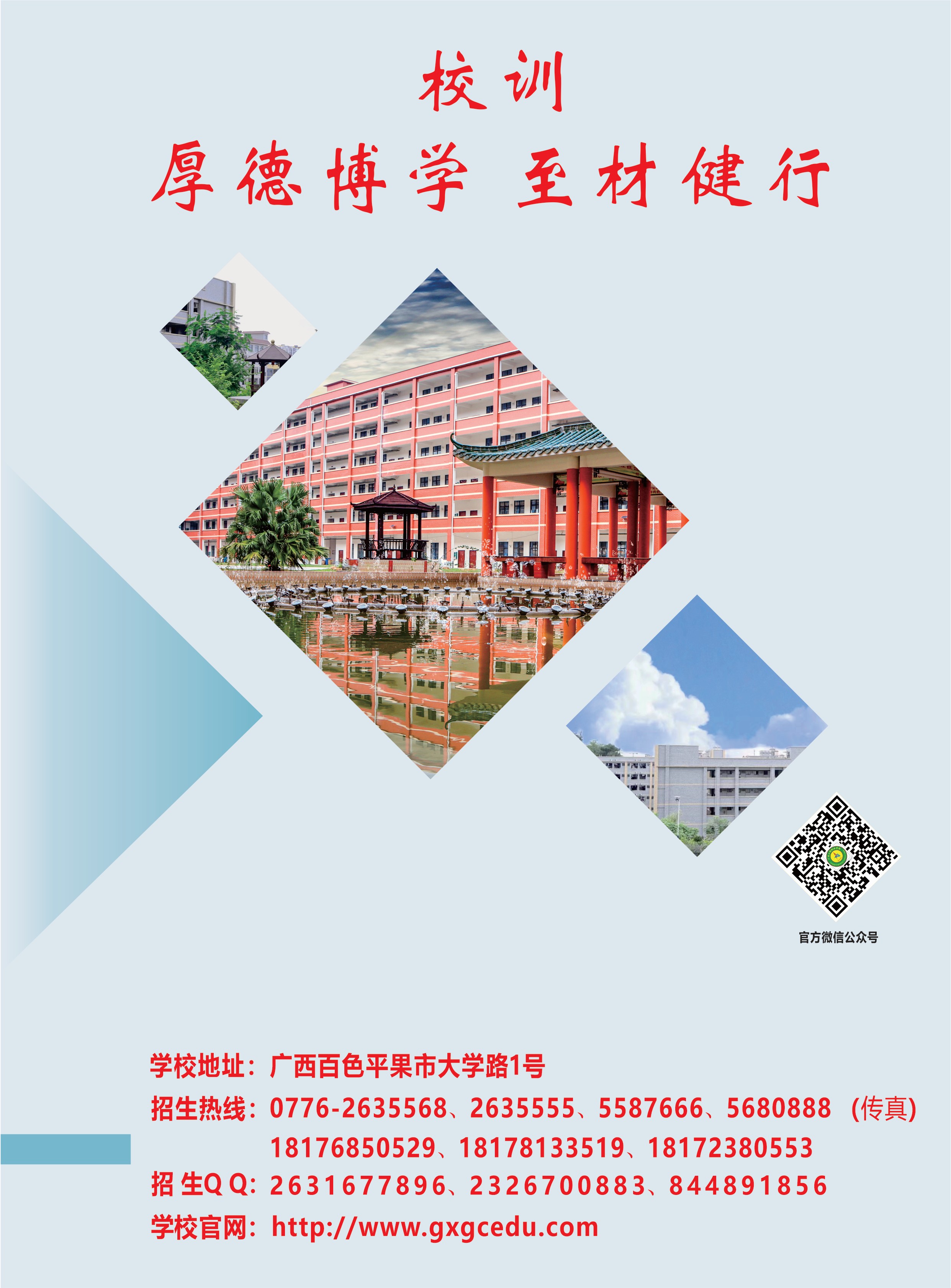 学校地址:广西平果市大学城大学路1号 电话:0776-5680888 邮编:531499
