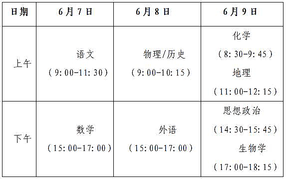 (二)考试时间。全国统考科目由教育部命题,按教育部规定时间组织考试。选择性考试科目由我区自主命题,每门考试时长均为75分钟,与全国统考科目的考试同期安排,如全国统考科目有调整,选择性考试科目的考试安排相应调整。具体考试时间安排如下: